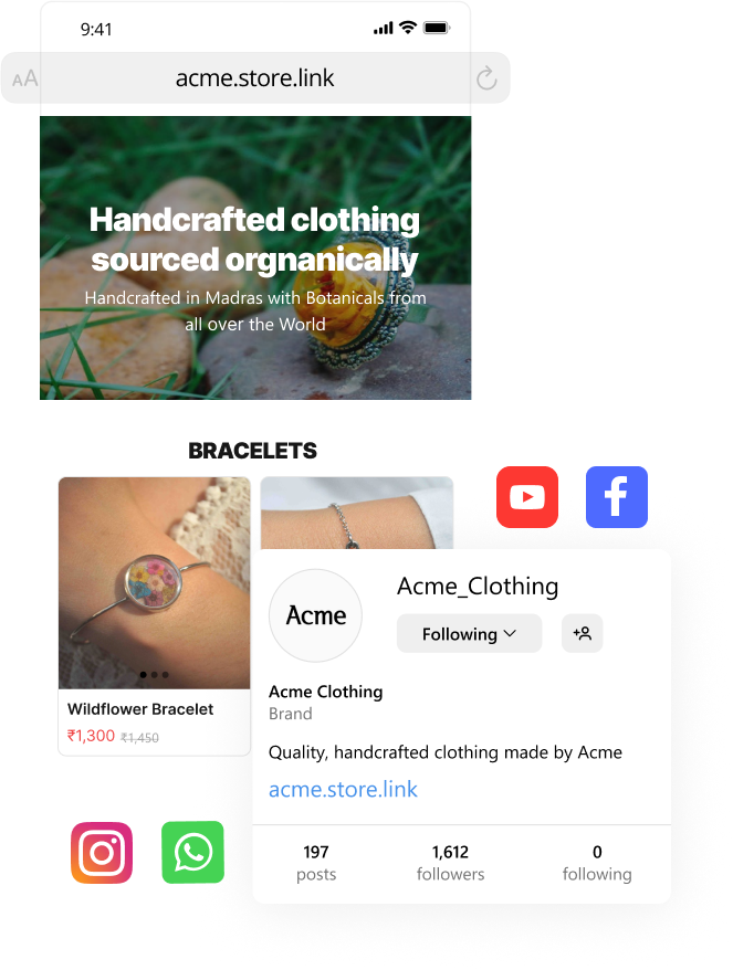 No need to buy a domain, since you get your business store.link instantly.